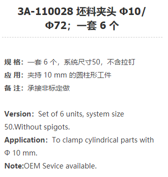 Model name : Blank holder Ø10/Ø72; 6 pieces
