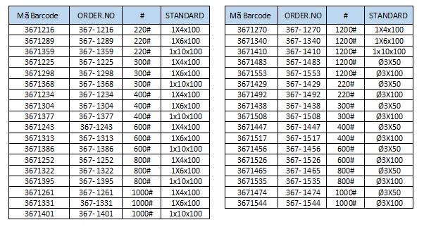 Kích thước: 180 #220 #250 #400 #600 #800 #1000 #1200 # một tổng cộng 8 các loại kích thước