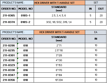 Model name : HEX DRIVER WITH T-HANDLE SET