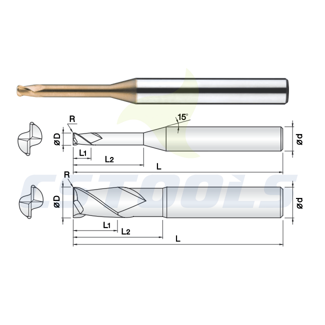 Model name : 2 Flutes Rib Corner Radius End Mills