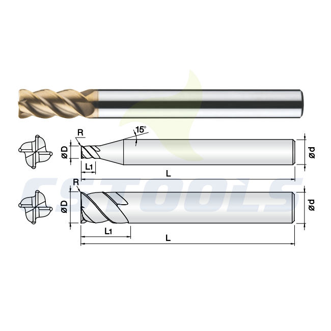 Model name : 4 Flutes 45o Helix Corner Radius Long End Mills