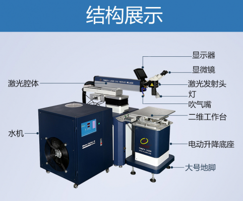 Máy dùng để sửa chữa và hàn khuôn gồm: đúc chính xác, đúc áp lực, hàn lỗ hổng, hàn các cấu trúc khác nhau, vàng, bạc, đồ trang sức